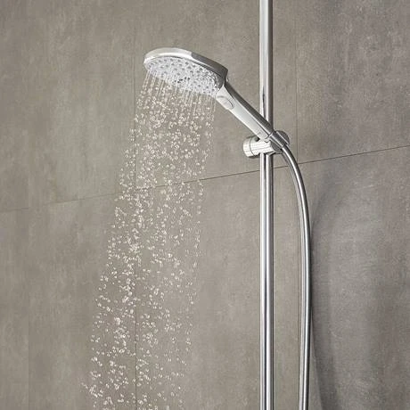 The Raindance Select E 120 3-Spray Hand Shower is truly impressive with its ergonomic and functional design. The hand shower offers three different spray patterns: The full-bodied Rain spray is ideal for washing hair. Then pamper yourself with RainAir, the soft shower rain, whose droplets feel very soft thanks to aeration. Or wake up your senses with the concentrated, pleasant massage spray on the WhirlAir spray type.